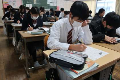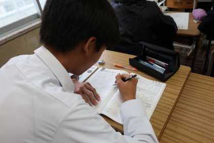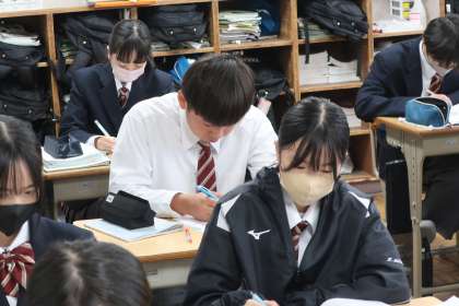 定期テストに向けて、テキストやタブレットを活用して、力試しに取り組んでいました。