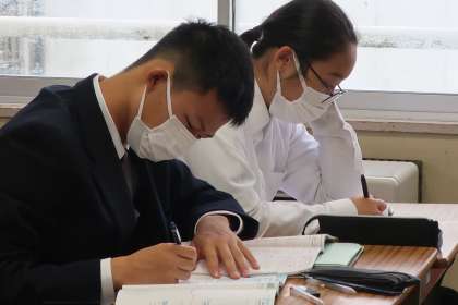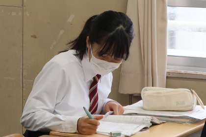 定期テストに向けて、テキストやタブレットを活用して、力試しに取り組んでいました。
