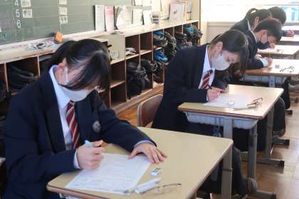 単元のまとめのテストに取り組んでいました。学習診断テストや定期テストだけでなく、どんなテストにも全力を出しています。
