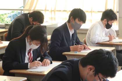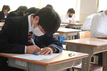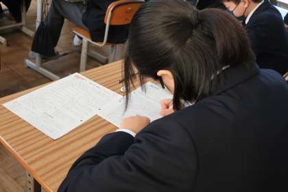 単元のまとめのテストに取り組んでいました。学習診断テストや定期テストだけでなく、どんなテストにも全力を出しています。