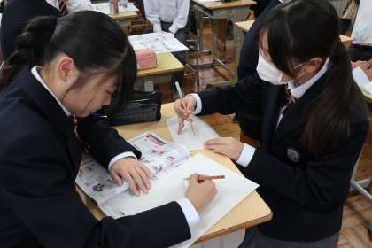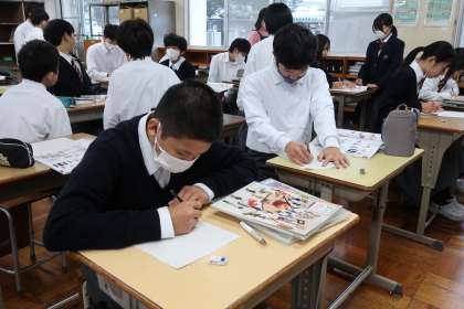 平行な線を引いて面を埋める技法=「ハッチング」を習得するため、繰り返し練習していました。光と影のコントラストを生かした作品づくりに役立てようと、一生懸命取り組んでいました。