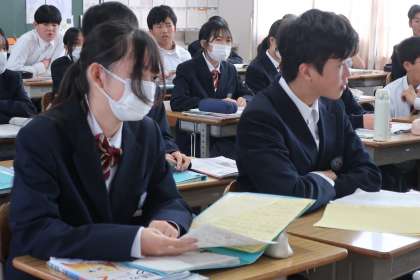 2年3組の英語の授業の様子です。 動名詞と疑問詞を使った英文の作り方を学んでいました。