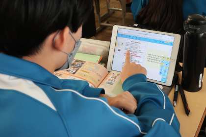 11/11 3-5 労働者と企業の関係 3 公開日 2025/11/11 更新日 2025/11/11 各学年から 3年5組の社会・公民分野の授業の様子です。 「労働者と企業の関係について考えよう」をテーマに、「雇用契約」について詳しく調べていました。