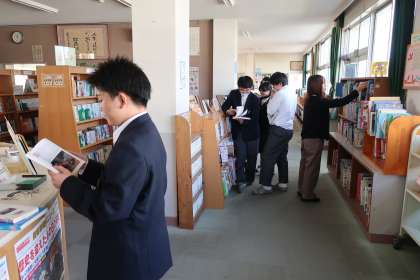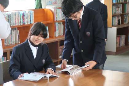1,2学級の国語の授業の様子です。 興味ある本を探しに、図書館に出かけていました。