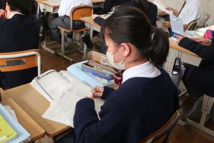 前回実施された単元テストが返却され、間違えてしまった問題を解き直していきます。定期テストに備えた大切なテスト勉強の一つです。