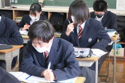11/12 3-5 まずは定期テストに向けて 3 公開日 2025/11/12 更新日 2025/11/12 各学年から 3年5組の理科の授業の様子です。 まずは間近に迫った定期テストに向けて、出題範囲を一生懸命勉強しています。長い目で見た時の入試にも重要であることが分かってきているようです。