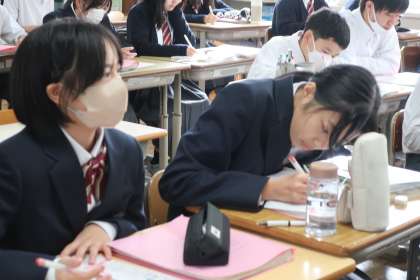 11/12 1-2 テストに向け意識高まる 3 公開日 2025/11/12 更新日 2025/11/12 各学年から 1年2組の英語の授業の様子です。 単元テストが返却され、定期テストに向けての意識も高まってきています。