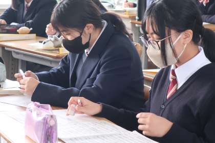 合唱コンで披露した曲の実技テストと振り返りを行っていました。発表時は緊張していますが、終了時には周りから温かい拍手が送られていました。