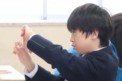 1年1組の数学の授業の様子です。 回転図形の学習で、作図の方法を学んでいました。