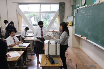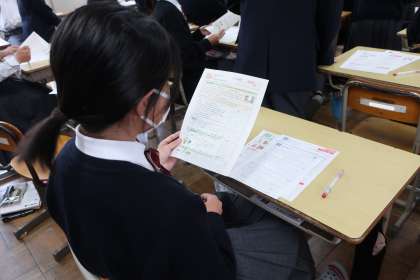 単元のまとめのテストが返却され、正解できなかった部分をさっそく解き直しです。定期テストに備えています。
