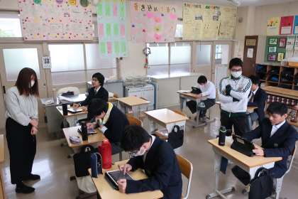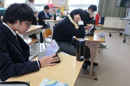 タブレットの学習アプリ・キュビナを活用し、それぞれの課題に取り組んでいました。考え方もメモに残すなど、しっかりと学習に取り組んでいる様子が伝わってきました。