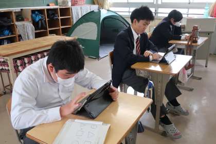 タブレットの学習アプリ・キュビナを活用し、それぞれの課題に取り組んでいました。考え方もメモに残すなど、しっかりと学習に取り組んでいる様子が伝わってきました。