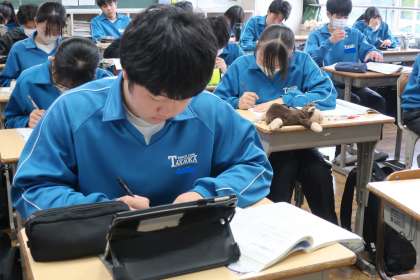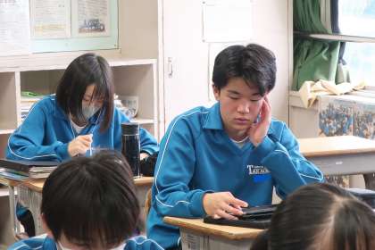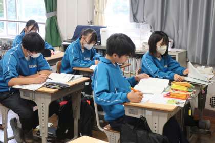 今週に入って実施されている教育相談。テスト週間中ということもあり、相談の順番でない生徒は、教室でテスト勉強です。各自が決めた教科や学習内容で、仲間の力を借りたりしながら、弱点の克服に取り組んでいます。