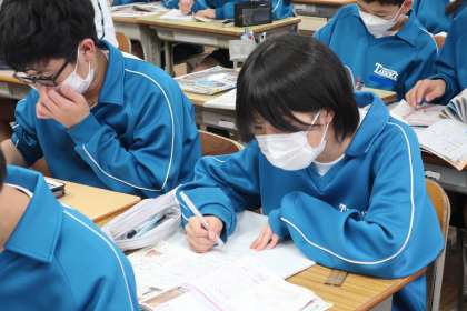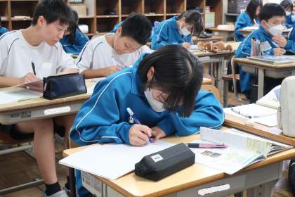 今週に入って実施されている教育相談。テスト週間中ということもあり、相談の順番でない生徒は、教室でテスト勉強です。各自が決めた教科や学習内容で、仲間の力を借りたりしながら、弱点の克服に取り組んでいます。