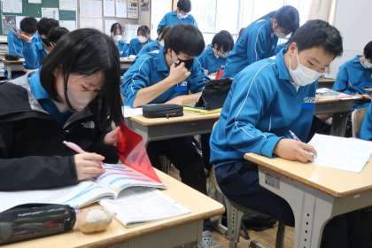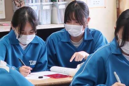 今週に入って実施されている教育相談。テスト週間中ということもあり、相談の順番でない生徒は、教室でテスト勉強です。各自が決めた教科や学習内容で、仲間の力を借りたりしながら、弱点の克服に取り組んでいます。