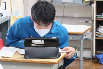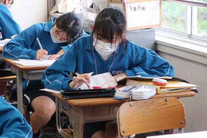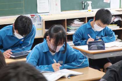 今週に入って実施されている教育相談。テスト週間中ということもあり、相談の順番でない生徒は、教室でテスト勉強です。各自が決めた教科や学習内容で、仲間の力を借りたりしながら、弱点の克服に取り組んでいます。