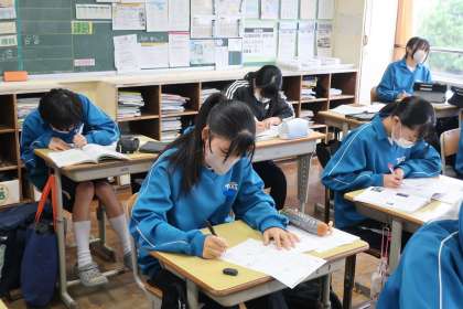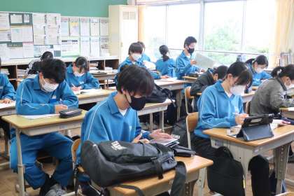 今週に入って実施されている教育相談。テスト週間中ということもあり、相談の順番でない生徒は、教室でテスト勉強です。各自が決めた教科や学習内容で、仲間の力を借りたりしながら、弱点の克服に取り組んでいます。