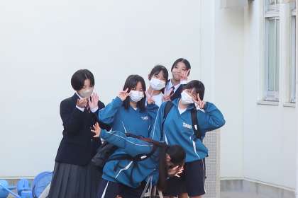 毎朝、1,2年生の昇降口前では、1年生の有志生徒たちが登校してくる仲間に元気なあいさつの声をかけてくれています。