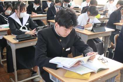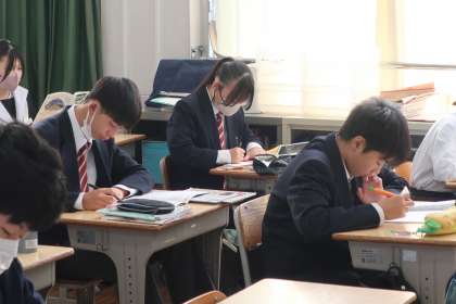 朝の活動の時間で、直前の追い込みをする3年1組の様子です。