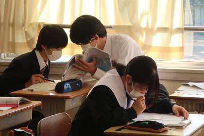 朝の活動の時間で、直前の追い込みをする3年2組の様子です。