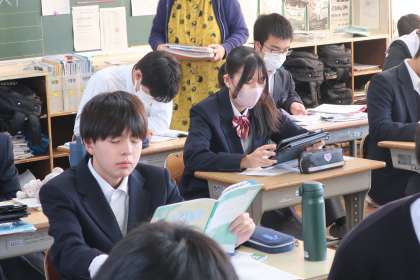 朝の活動の時間で、直前の追い込みをする3年4組の様子です。