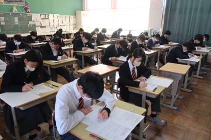 3年5組の『第3回定期テスト』(初日)の様子です。