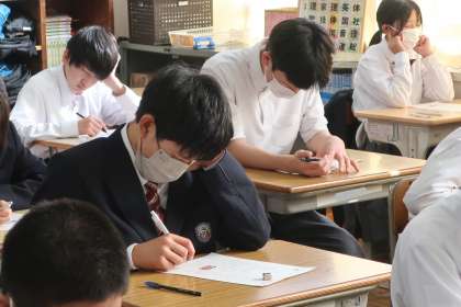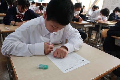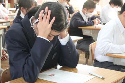 定期テスト目前での単元テストです。弱点の洗い出しをし、週末の学習に生かしてほしいと思います。