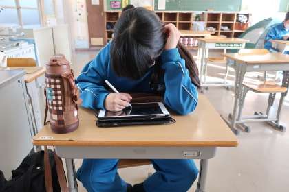 3年生は午前中のテストを終え、一足早く下校。いつものにぎやかなクラスを考えると、少し寂しさを感じました。
