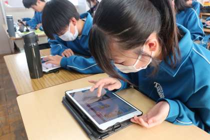 「デジタル情報を整理して、イメージどおりに動画を動かしてみよう」をテーマに、プログラミングの学習に取り組んでいました。