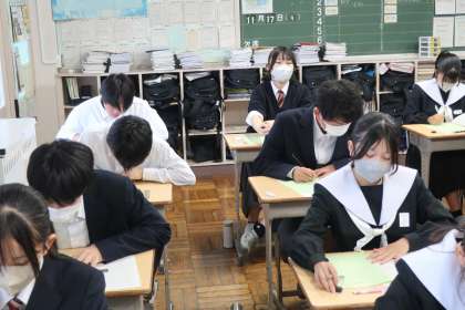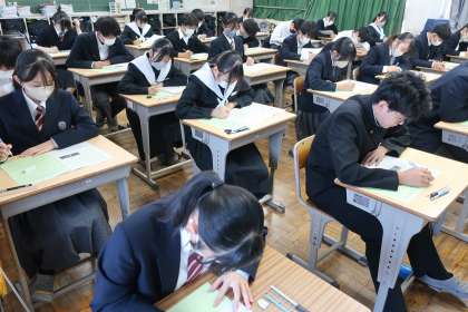 3年1組の『第3回定期テスト』(2日目)の様子です。