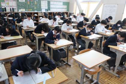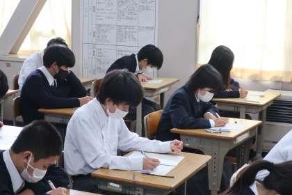 1年2組の『第3回定期テスト』(初日)の様子です。