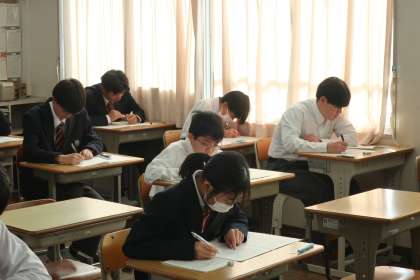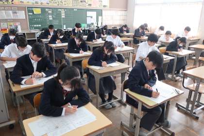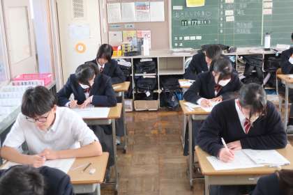 2年3組の『第3回定期テスト』(初日)の様子です。