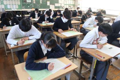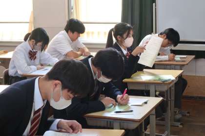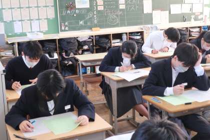 3年4組の『第3回定期テスト』(2日目)の様子です。