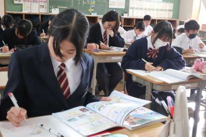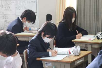 朝の活動の時間で、直前の追い込みをする1年2組の様子です。