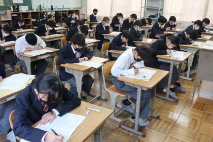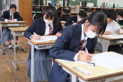 1年1組の『第3回定期テスト』(最終日)の様子です。