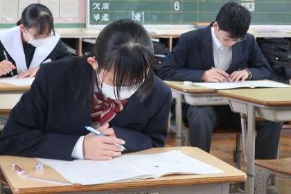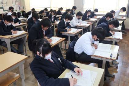 3年2組の『第3回定期テスト』(最終日)の様子です。