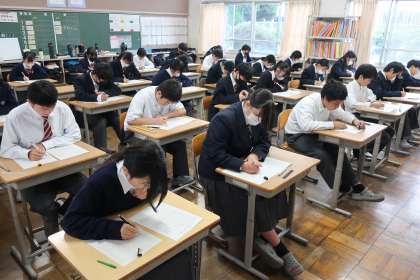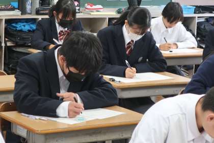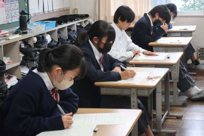 1年4組の『第3回定期テスト』(最終日)の様子です。