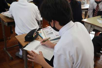 平行な線を引いて面を埋める技法=「ハッチング」を習得するため、繰り返し練習していました。光と影のコントラストを生かした作品づくりに役立てようと、一生懸命取り組んでいました。