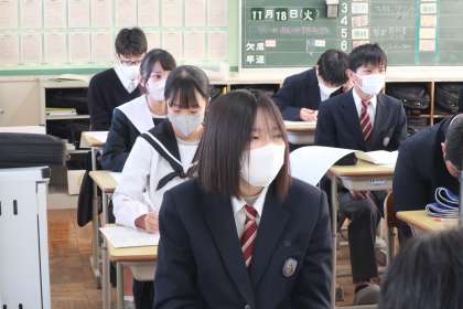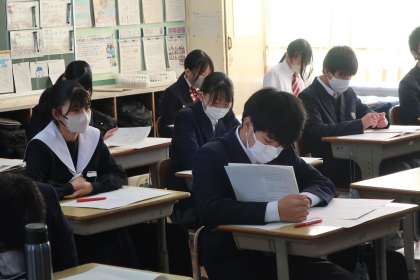 定期テストの返却と解説が行われていました。また、2週間後に迫った第3回学習診断テスト(今年度最終)に向けての対策も行われていました。