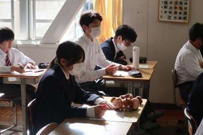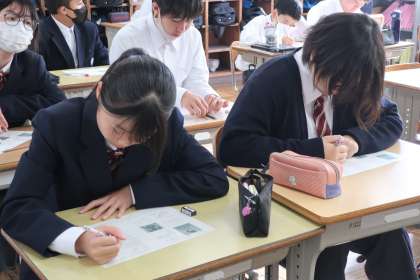 定期テストの返却と解説が行われたあと、正答率の低かった問題や整理して覚えてほしい部分のプリントが用意され、学習診断テストに向けた学習を確認していました。