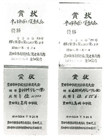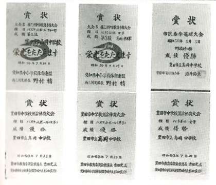 さて、私たちが入学したのは昭和22年4月であったと思い起こす時に、それがまた新学制によって本校が発足をした年でもあることに格別の親しみを感じます。そのころは未だ現在の中学校の建物は何もなく、一帯は、高岡村に代表された田園風景があって、入学した私たちは暫くの間を旧高等小学校の校舎で学んだのであります。とは申しても、あの戦後のようやくにして復興への槌音が鳴り出した時代でのこと、生活物資をはじめ学用品とて恵まれた状態ではありません。答案用紙1枚にしても少し強く書けば破れる、粗末なわら半紙でしかなく、試験の時など問題とにらめっこで、恐る恐る鉛筆を運んだ記憶がございます。また、通学に欠くことのできない履物の多くも、再生ゴムを使った底の硬いズック靴かわら草履で、私も時には母が作ってくれた草履で、地域的に4kmの道を歩いて1〜2往復すれば破れてしまうので、時々裏側を水に浸して土をつけたりして、少しでも長く持たせようと気を配りながら通いました。
