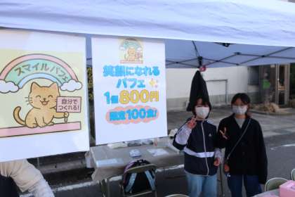 本校からも有志の生徒たちが「スマイル パフェ」を出店をしました。