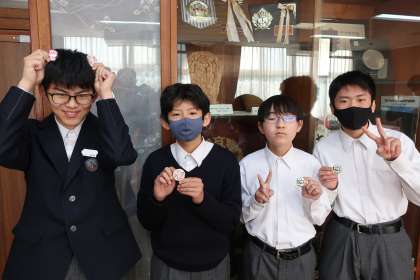 今回は、これまでの地域のイベントや星コンで演技を披露したり、ボランティアスタッフとして活動してくれた生徒に、学校オリジナル缶バッジ(=「WE LOVE たかおか」バッジ)が配布されました。