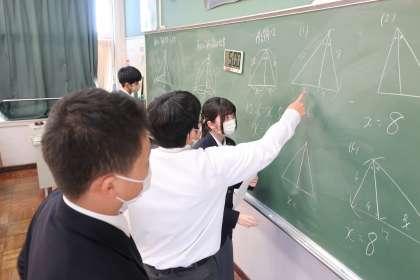 「角の二等分線」の性質について確認したあと、知識の定着のために演習問題に取り組んでいました。