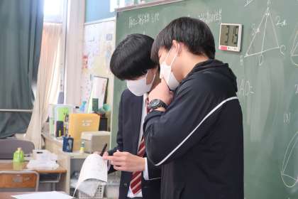 「角の二等分線」の性質について確認したあと、知識の定着のために演習問題に取り組んでいました。