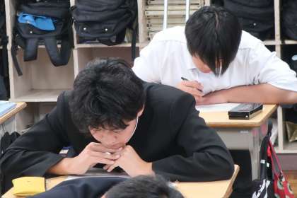 2週間後に迫った学習診断テストに向けて類似問題に挑戦していました。本番までの時間を大切にしてほしいと思います。
