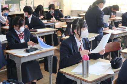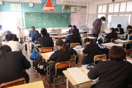 2週間後に迫った学習診断テストを意識し、類似問題に挑戦していました。仲間と正確に早く解くための方法を共有していました。