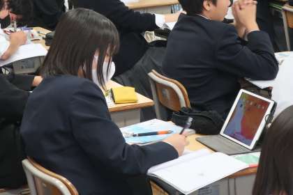 太陽の一日の動きの学習で、「太陽の見かけの動きはなぜ起きるのだろう」をテーマに天体の位置関係をイメージしながら学びを深めていました。
