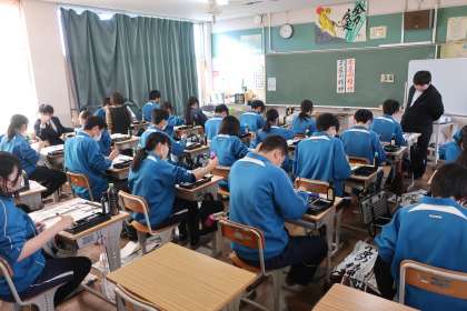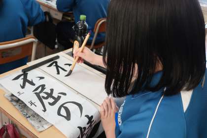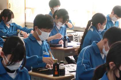 冬休み明けに実施される書き初め大会に向け、練習が始まりました。講師の先生をお招きしての活動です。冬休みもしっかり練習に励んでほしいと思います。