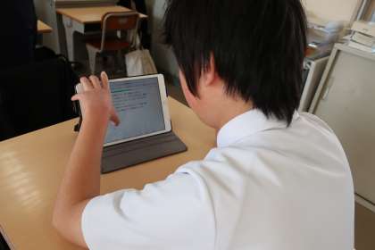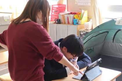 学習タブレットのアプリを使っての学習です。漢字や文章の読み込みなど、各自の課題をそれぞれが集中して進めていました。